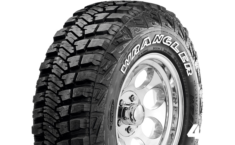 Дальше просто — засунули в боковину несколько слоёв кевларового полотна, добавили силики к резиновой смеси для большей пластичности и рецепт вездеходных шин Wrangler MT/R готов. Так что же получили в результате? Очень выносливую шину, способную спокойно переносить езду даже при давлении 0,3 Атм и не боящуюся наездов спущенной боковиной на острые камни. Разуть такое колесо практически невозможно! Кроме того, при низком давлении начинает полноценно работать часть протектора, расположенная на боковой поверхности, добавляя ему вездеходности. А в накачанном состоянии на асфальте шины остаются достаточно тихими, не мешая слушать радио или разговаривать между собой.