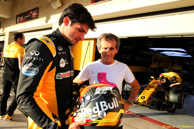 После Гран При Японии Карлос Сайнс перешёл из Toro Rosso в Renault, быстро освоился в новой команде и уже в США заработал для неё шесть очков. Его вклад помог Renault подняться на 6-ю позицию в Кубке конструкторов, благодаря чему она получит от FOM больше призовых. Четырёхкратный чемпион мира Ален Прост, который сотрудничает с Renault Sport в качестве консультанта, доволен испанским гонщиком.