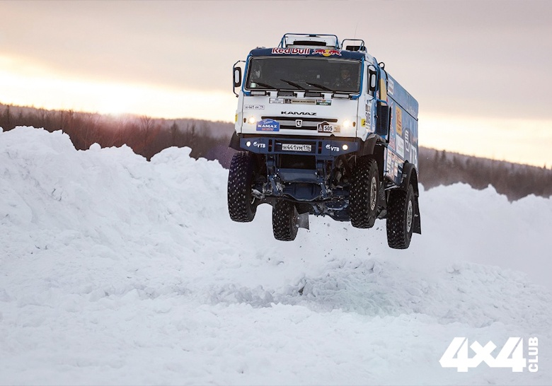 Команда «КАМАЗ-Мастер» испытала гоночный грузовик перед ралли-рейдом «Шелковый путь», который стартует 7 июля с Красной площади. Видео с тестов в Кировске, в котором 10-тонный автомобиль прыгает на 37 метров, опубликовано на YouTube-канале Red Bull.