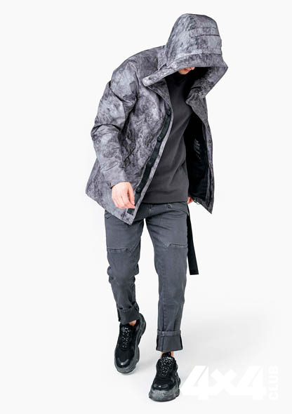 любителям технологичной одежды чистого, минималистичного кроя. Отличный образец их фирменного стиля — мужская куртка с капюшоном-перископом и специальными лямками для ношения за спиной, когда становится жарко.