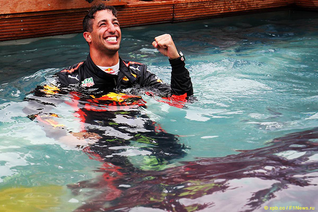 Даниэль Риккардо: Спасибо! Теперь я могу в полной мере насладиться успехом! Посмотрите, как радуется команда, как реагируют болельщики, и сейчас мне сначала надо найти моих родителей, которые прилетели в этот уик-энд из Австралии, а потом обязательно искупаться в бассейне!