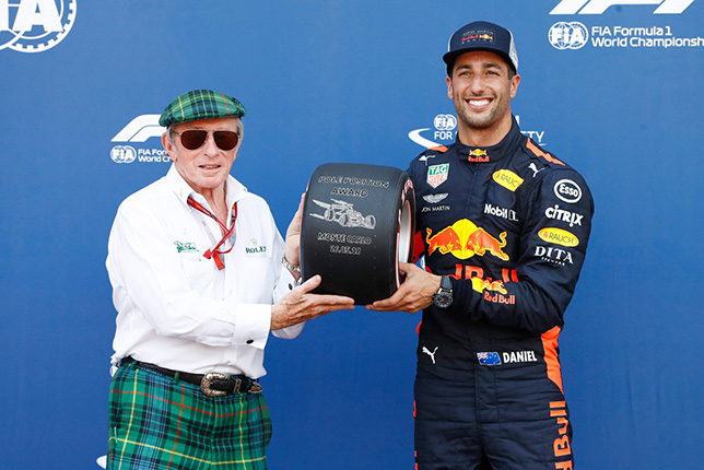 Даниэль Риккардо выиграл квалификацию в Монако, причём уже во второй раз в своей карьере, и за сегодняшнее достижение ему вручили специальный приз от компании Pirelli. Награду австралийскому гонщику Red Bull Racing вручил Джеки Стюарт, трёхкратный чемпион мира, в своё время трижды побеждавший на этой трассе.