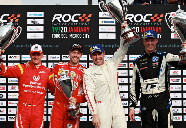 В поединке Феттеля и Рохаса на ралли-кроссовых машинах RX Supercar Lite быстрее был четырёхкратный чемпион мира, вновь подтвердив свою универсальную квалификацию. А вот Шумахер уступил мексиканцу Бенито Гуэрра за рулём спорткара Ariel Atom.