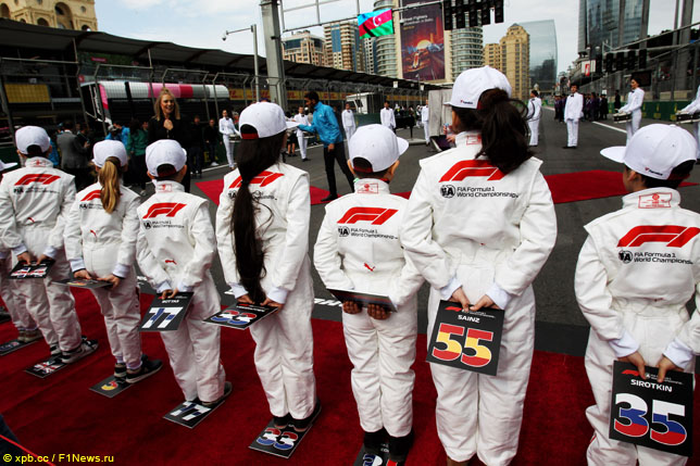 «Мы не взимаем плату за появление детей на стартовой решетке, – заявил представитель Liberty Media. – Детей выбирают национальные спортивные клубы совместно с промоутерами этапа, учитывая их достижения в картинге и в учебе. Родители и дети самостоятельно приезжают на трассу, а взамен получают возможность представлять свою страну на стартовой решетке, спеть национальный гимн. Им также выдают комбинезоны, обувь, кепки и билеты на гонку для детей и их родителей».
