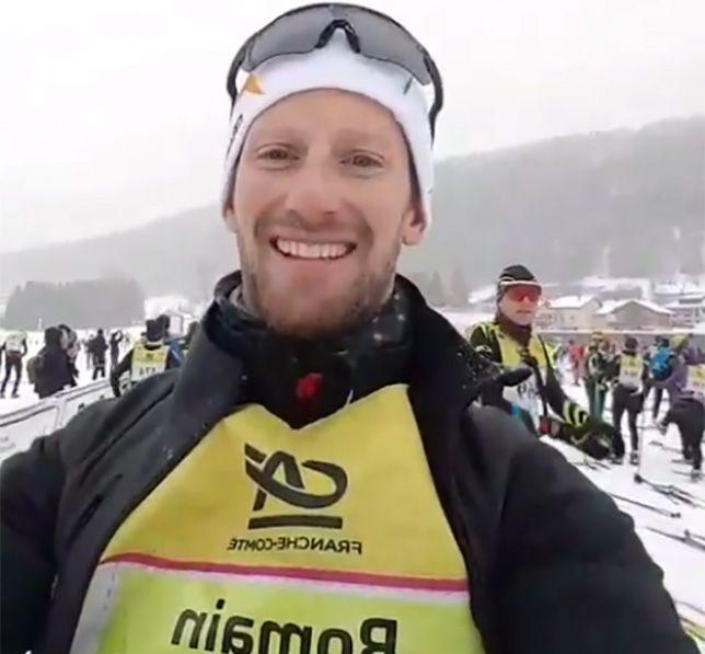 Сначала гонщик Haas поделился с болельщиками меню своего весьма питательного завтрака, затем отправился по горной дороге куда-то на природу, и вот мы его видим в полной лыжной экипировке среди множества других участников марафона, который проходил на востоке Франции на территории региона Бургундия – Франш-Конте.