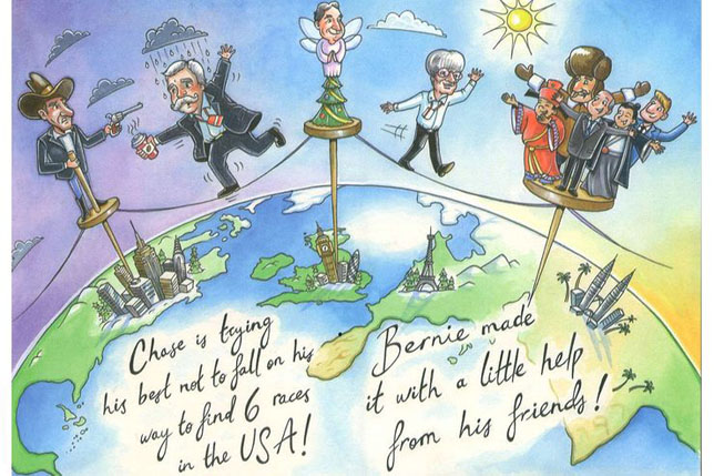 Открытка 2017 года посвящена безуспешным попыткам Чейза Кэри, преемника Берни, организовать несколько Гран При на территории США. В частности, в Liberty Media говорили о планах проводить этапы в Нью-Йорке, Майами, Лонг-Бич и Лас-Вегасе, но дальше слов дело пока не продвинулось. При этом сам Берни напоминает, что успешно организовал этапы Формулы 1 в России, Бахрейне, Абу-Даби, Малайзии и Китае, которые принесли акционерам огромную прибыль.