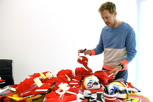 Он ставил свои автографы на многочисленных сувенирах, предназначенных для болельщиков Скудерии – все эти памятные вещи были присланы в Маранелло различными фан-клубами Ferrari. Разумеется, ценность фирменной бейсболки, миниатюрной копии шлема или модели гоночной машины многократно возрастает, если на ней есть подпись такого гонщика, как Феттель.