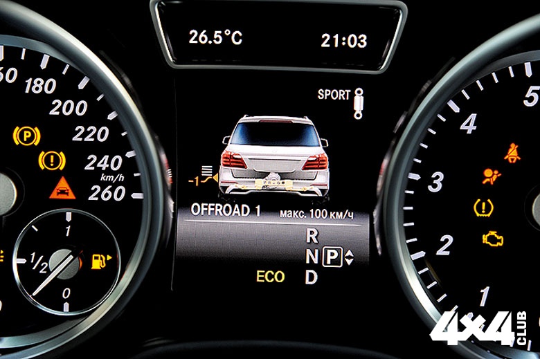 Не на всех GL и GLS стоит фирменный полный привод 4matic. Американские версии бывают и заднеприводными. Полный же привод делит мощность поровну между осями и снабжён блокировкой как межосевого, так и заднего межколёсного дифференциалов. На бездорожье им помогают противобуксовочная система 4ETS и режим Off-Road, который входит в базовый пакет. В нём есть и система помощи старта на подъём, и ассистент спуска, и понижающая передача, и подстройка всех систем под движение по бездорожью. Например, «поджатие» тормозных колодок, чтобы иметь возможность быстрее притормозить буксующее колесо. Системных отказов этих механизмов отмечено не было. Зато иногда в оттепель подглючивают контактные группы, особенно если машину всю зиму не мыли, а ездили при этом по раствору противогололёдного реагента глубиной по ступицу. Вместе с тем, учитывая наличие множества ассистентов и впечатляющие параметры проходимости на бездорожье, надо быть аккуратным, поскольку тяжёлая эксплуатация на пользу GLS не идёт.