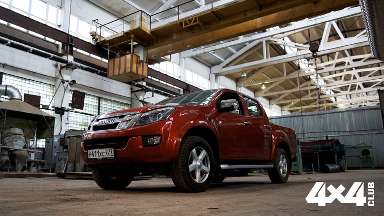 Такие, или примерно такие, мысли одолевали меня за рулём Isuzu D-Max, везущего нас с оператором на импровизированный внедорожный полигон, расположенный в одном из подмосковных карьеров. Вот он, выносливый и не склонный к сюрпризам автомобиль, рождённый в компании с более чем вековым опытом, всю свою жизнь выпускавшей грузовики да автобусы, то есть по сути коммерческую технику. А кто, как не производитель коммерческих машин, знает, что нужно потребителю и как cделать это просто и крепко? Судите сами, в основе машины мощная рама, к которой спереди крепятся не менее мощные двойные рычаги, а сзади — мост на рессорах. Кабина двухрядная с пятью полноценными местами (есть и полуторная с более длинным кузовом). Кузов размером 1 552 на 1 530 мм с откидным бортом, на который в случае чего можно встать или положить груз. Подвеска жёсткая и от того на новой машине немного тряская, зато даже с полной нагрузкой в 975 кг она не сдаётся на колдобинах, никогда не доходя до пробоя. В салоне всё как мы любим — просто и понятно (сказываются коммерческие корни). Хотя, наверное, это всё же преувеличение, поскольку ближайший родственник нашего D-Max — это Chevrolet TrailBlazer, от которого и взяты немного упрощённое торпедо, интерьер и сиденья. И так же как TrailBlazer, D-Max выпускают на заводе в Таиланде, правда, с поправкой на наш, а точнее североамериканский, суровый климат. Если учитывать, что чуть ли не половина всех пикапов рождается именно в этом Юго-Восточном регионе, D-Max вылетел из правильного гнезда. Двигатель — 2.5-литровая турбочетвёрка Isuzu 4JK1 — получился из грузового трёхлитрового мотора, а потому тоже необыкновенно надёжен. В нём две последовательные турбины, одна под другой, и современная технология впрыска. Плюсов от такого решения сразу два — стандарт «Евро‑5» достигается без применения дожига и всевозможной мочевины, а также напрочь отсутствует турбояма. У мотора ровная тяга с холостых оборотов и до максимума, а расход составляет 8,8 л/100 км. Ещё один плюс простой конструкции мотора — шестерёнчато-цепной привод распредвала (вечное решение). На нашем автомобиле в качестве коробки используется пятиступенчатый автомат — старый-добрый, со стандартным гидротрансформатором (есть версии с шестиступенчатой механикой). Дальше обычная раздаточная коробка с пониженной передачей 2,5 и подключаемый передний мост. Никаких тебе Terrain Response, всё вручную, предельно просто и функционально.