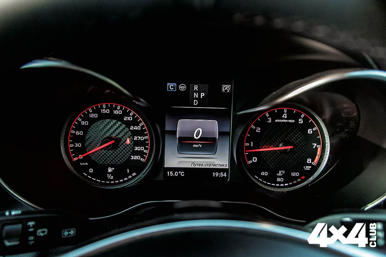 Так и не разрешив загадку появления на рынке модели GLC63 AMG, мы решили перейти непосредственно к тест-драйву. Первые километры пути ты обычно прислушиваешься, принюхиваешься и притираешься к автомобилю. То, что это AMG, чувствуется моментально и без всяких манёвров и рывков с места. Больше того, можно ехать не быстрее 20 км/ч и тем не менее понимать, что у тебя под пятой точкой. Собранная, выстроенная маньяками из Аффальтербаха, подвеска на неровностях довольно характерно подправляет кузов эдакими мелкими тычками. Мотор на малых оборотах почти не слышен, хотя за его напряжённой, вибрирующей тишиной скрывается стена канонады. И когда эта вибрация передаётся организму, ты больше не в состоянии ждать — нога вдавливает педаль в пол и… Тут надо пояснить, что в это время я ехал в левом ряду Ленинградского шоссе, и у меня была возможность почувствовать разгон с 60 до 100 км/ч. И вот после того как я нажал на газ, случилось следующее. Во-первых, нос машины ощутимо приподнялся, и машина будто бы присела на задние колёса, во‑вторых, разгрузившись, передок стал отчаянно вилять из стороны в сторону, словно выбирая кого бы треснуть — отбойник или соседа справа. Всё это сопровождалось рёвом выпуска и моим нервным хохотом. Потом, когда передок опустился на грешную землю и обрёл сцепление с дорогой, широкие покрышки стали судорожно ёрзать в пределах колеи, прорезанной в асфальте любителями шипованных шин (хотя, надо сказать, есть и другие версии её появления). Эмоций оказалось через край — страх, восторг, удивление, недоумение… И, поверьте, это далеко неполный список!
