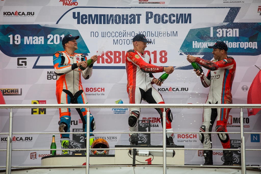 Интрига не заставит себя ждать! Уже на первом этапе в королевском классе Superbike подтвердил свое безоговорочное лидерство Владимир Леонов (SPB Racing Team), несмотря на возникшие проблемы с колесом. Сергей Крапухин (RWT Motorsport) – показал сильнейшую борьбу, но оставил за собой второе место. Третье место вырвал в ожесточенной борьбе с пилотом команды Motorrika Антоном Ерёмином Петр Кожеуров из ЦСКА «DMC ПанАвто Ямаха».