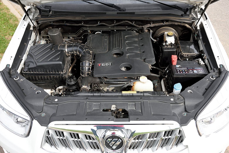 Двигателей на Foton Sauvana пока только два, и оба они бензиновые: объём 2.0 л, а мощность 201 л.с. (комплектации Basic и Comfort) и 217 л.с. (Luxury и Premium). Крутящий момент 300 и 320 Нм соответственно (дизель 2.8 л — такой же, как на Foton Tunland, — появится у нас позже). Турбина бензинового мотора — Borg Warner. Шины сингапурской марки Giti индонезийского производства размерностью 265/70 R16.
