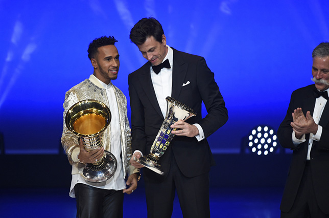 На вчерашней гала-церемонии FIA в Париже ему был вручён чемпионский кубок как обладателю титула в Формуле 1, а команда Mercedes в четвёртый раз была удостоена Кубка конструкторов. Завершается праздничный цикл Рождественскими вечеринками, которые сегодня пройдут на базах в Бриксуорте и Брэкли.
