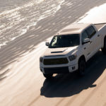 Спереди на «Тундре» в амортизаторах используются 11 перепускных зон – семь на сжатие и четыре на отбой, а сзади – 12 зон (восемь и четыре на сжатие и отбой соответственно). Спереди дорожный просвет увеличен на 51 миллиметр, а ход подвески – на 38 миллиметров. Сзади ход подвески стал больше на 51 миллиметр.