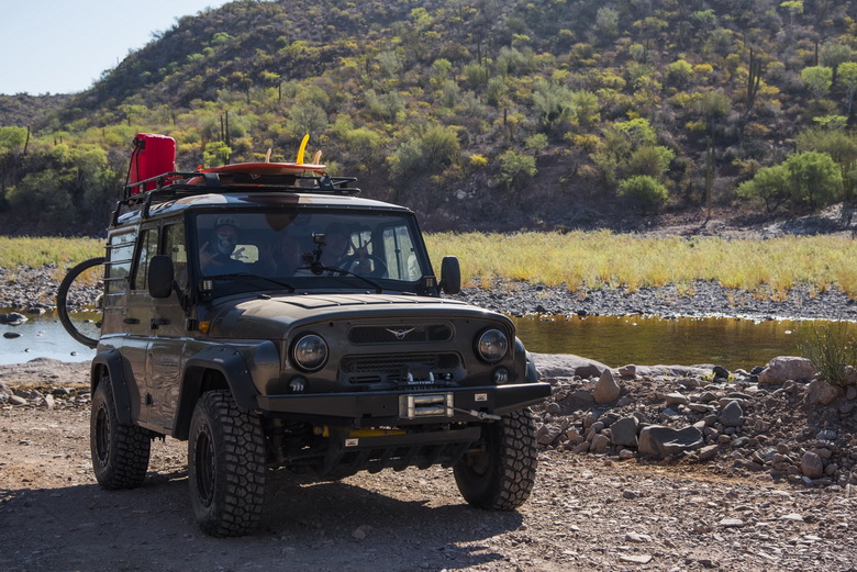«Мы хотели обратиться к автомобилю, который бы выглядел по-настоящему интернационально. Нам была нужна брутальная машина, внедорожник с большими колесами и рамой, как у игрушечного автомобиля. Российский полноприводный автомобиль подходил, как перчатка», — вспоминает Родригес.