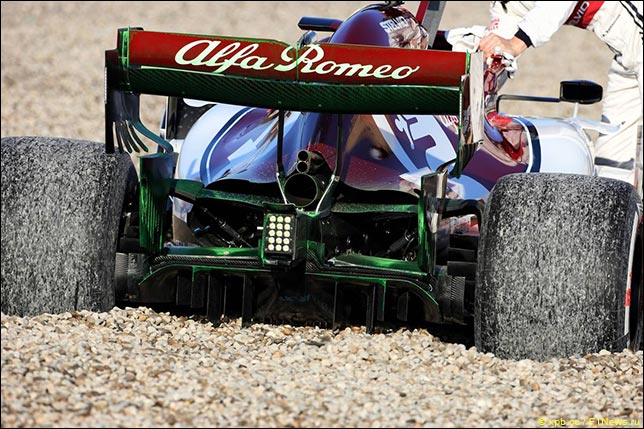 Уже на пятой минуте первого дня тестов появились красные флаги – Alfa Romeo Кими Райкконена вылетела в гравий из-за проблем с тормозами. Машину пришлось эвакуировать, гонщик вернулся в боксы на шаттле.