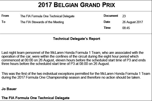 В ночь на субботу сотрудники McLaren Honda, работа которых связана с обслуживанием машин, нарушили правило комендантского часа – они находились на автодроме в запрещённый период с 00:00 до 8:00 утра.