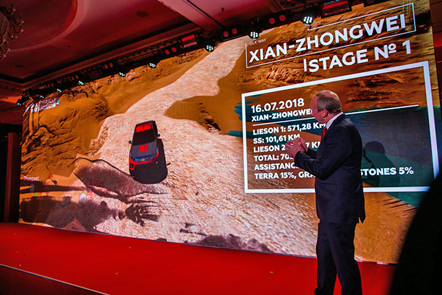 В Москве, в отеле Ritz Carlton, состоялась презентация маршрута ралли-рейда «Шёлковый путь-2018». До сих пор он был известен только в общих чертах – гонка стартует 15 июля в китайском Сиане, а финиширует 27 июля в Москве. Подробности маршрута рассказал руководитель ралли-рейда Владимир Чагин.