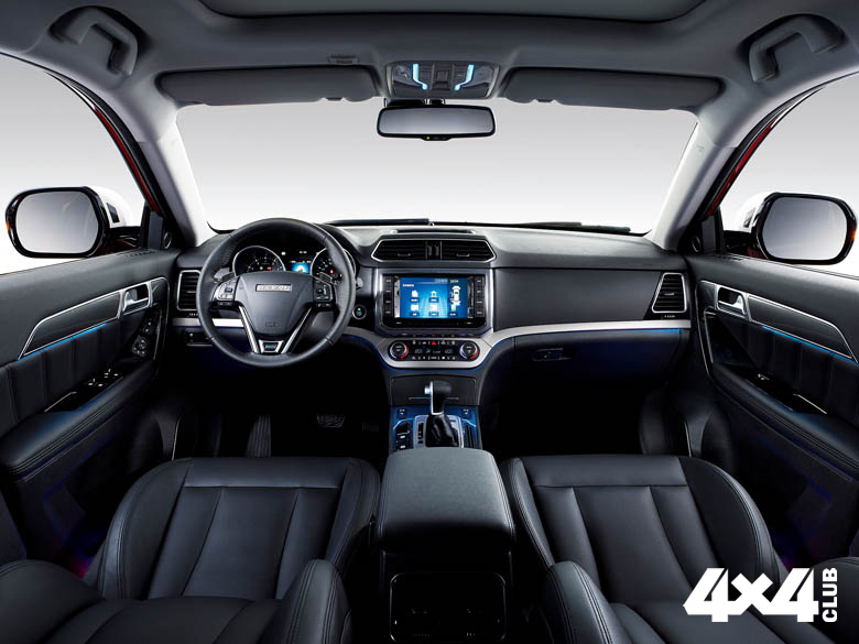 Зато здесь богатый перечень электронных систем. Это системы стабилизации и распределения тормозных усилий, ABS, противобуксовка, помощь при спуске и на подъёме, автоматический ручник и удержание во время старта на уклоне. Есть сиденья с электроприводом и памятью, датчики дождя и света, индикатор давления в шинах, камера заднего обзора, круиз-контроль, восьмидюймовый экран мультимедиа, USB-разъём и меняющиеся цвета подсветки салона (целых шесть цветов!). Отдельный шик – светящаяся надпись HAVAL, проецируемая из наружных зеркал в пространство возле передних дверей. Ну чтобы вы ненароком не забыли, с кем имеете дело.