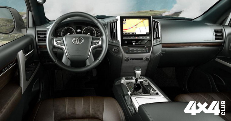 В отделке салона внедорожника используется полуанилиновая кожа черного или коричневого цвета. В черном цвете выполнен потолок. Эксклюзивность топовой версии также должны подчеркнуть дизайн отдельных элементов интерьера и прострочки сидений. В список оснащения Toyota Land Cruiser 200 Executive Lounge входят светодиодные фары, четырехзонный климат-контроль, аудиосистема с 14 динамиками, беспроводная зарядка для смартфонов, а также система выбора режимов движения. Внедорожник можно укомплектовать бензиновым или дизельным двигателем V8, совмещенным с шестидиапазонной автоматической коробкой передач и полноприводной трансмиссией. В базе — пневмоподвеска с функцией регулировкой дорожного просвета и адаптивной настройкой жесткости.