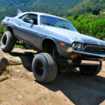 Из других особенностей внедорожного Challenger – раздвоенная выхлопная система, четырехступенчатая автоматическая трансмиссия, бронированная раздаточная коробка с понижающими передачами и усиленные мосты с блокировкой ступицы. Покрышки – зубастые BFGoodrich All Terrain T/A KO.