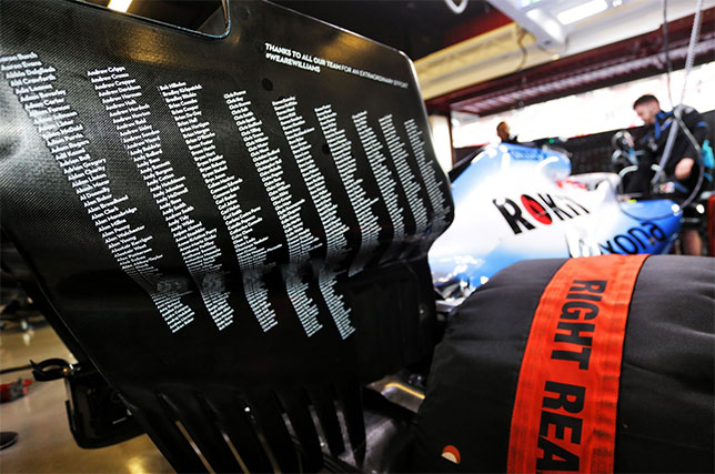 Тем временем команда придумала оригинальный и по-своему трогательный способ поблагодарить своих сотрудников: на торцевых пластинах заднего крыла машины появился длинный поимённый список всех, кто имел отношение к созданию FW42.