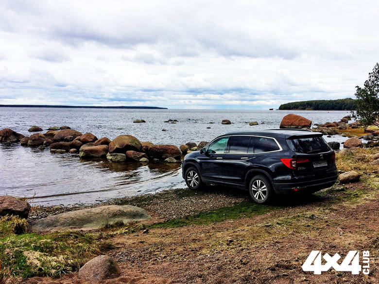 Ну а раз уж мы обсуждаем лодочную тему на страницах журнала о внедорожниках, нельзя не затронуть вопрос об использовании автомобиля. Покупка катера для большинства рыболовов — предприятие весьма затратное. Немногие могут позволить себе апгрейд машины, в соответствии с изменившимся классом плавсредства. Большой рамный внедорожник, способный без напряжения таскать катер весом 2–2,5 тонны, требует особого внимания и значительных вложений. Поэтому, собственно, я и выбрал Honda Pilot. Он без проблем решает вопрос транспортировки такого комплекта с ощутимым запасом мощности, да и по цене и неприхотливости один из лучших в классе. Это значит, что, двигаясь по трассе в относительно спокойном режиме, вы вообще не ощущаете груза за спиной, если, конечно, не обращать внимания на возросший расход топлива. При максимальной загрузке вес комплекта не должен превысить 1,5 тонн, в реальности же будет где-то 1,1–1,2 тонны. Проблемы могут возникнуть лишь в условиях необорудованных спусков на воду. Там же, где слип хоть как-то оборудован, внедорожник такого класса без проблем решит задачу и спуска, и подъёма. Кстати, у этой машины есть ещё одна полезная при транспортировке катеров функция — при включении правого поворотника на дисплей выводится изображение с камеры, установленной на боковом зеркале, и перестроения становятся более безопасными. Ну и большой багажник можно заполнить снаряжением, канистрами с топливом и провизией для длительных экспедиций.