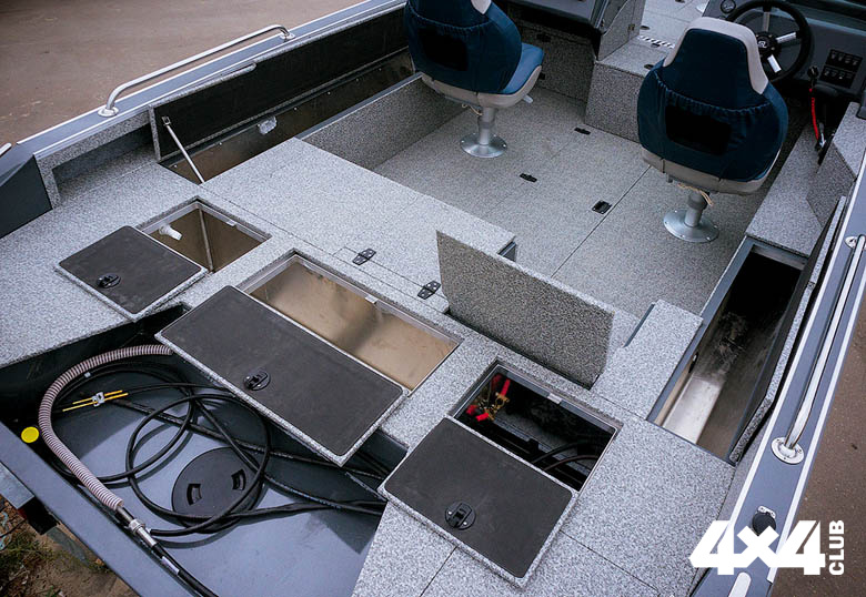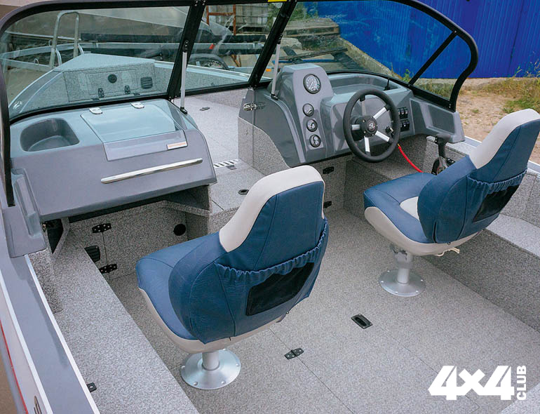 Так 470 или 535? Ну в самом деле что такое 65 см? Сущая ерунда! Но на деле даже 10–20 см к длине могут существенно изменить назначение катера и его возможности. И я убеждён, что, если вы не ставите перед собой сверхзадач, ваша акватория, в целом, ограничена и не предполагает «офшорных» переходов, вы ищите лодку для рыбалки, но не исключаете и других вариантов отдыха на воде, располагаете достаточным, но всё же ограниченным бюджетом, то катер именно такого размера подойдёт вам больше всего. Общий бюджет комплекта состоит из нескольких составляющих: собственно, самого борта, мотора, трейлера для перевозки, системы навигации, тентов и ряда менее значимых допов. Учитывая, что в размере 535 см рекомендованная мощность двигателя находится в пределах 115–140 л. с., общая стоимость комплекта вполне укладывается в психологически приемлемые два миллиона рублей. Причём эта сумма включает не только хорошую систему навигации, но и перечень всевозможных опций. Если же рассматривать лодку чуть большего размера, например, 580 или 6+, то конечный прайс будет заметно выше. Хотя дело, конечно, не только в деньгах. В катере длиной больше пяти метров можно достаточно комфортно ловить рыбу втроём, а путешествовать и вовсе компанией до 6 человек, устраивая пикники для двух семей с детьми. В лодке меньшего размера это вряд ли возможно. Обилие рундуков и объём топливного бака позволяет совершать дальние путешествия, а относительно небольшой размер и минимальная осадка в 31–35 см допускают манёвры на мелководных участках и подход к берегу практически в любом месте.