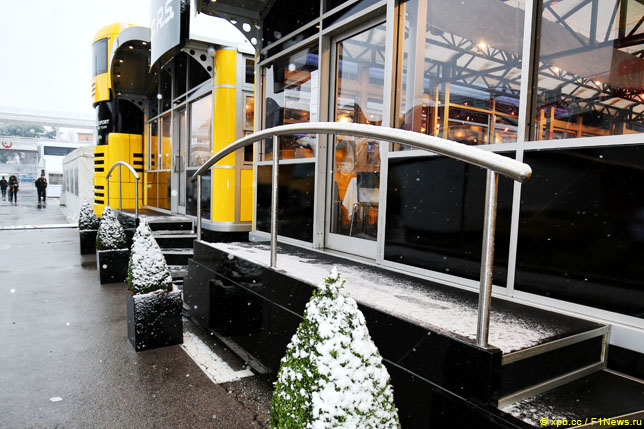 На предсезонные тесты в Барселоне команды Формулы 1 привезли моторхоумы, которые их сопровождают во время европейских этапов чемпионата. Моторхоумы полностью оборудованы для полноценной работы на трассе – в них есть кабинеты инженеров, столовая, комнаты отдыха.