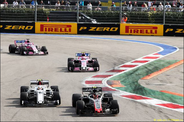 Гонщики Force India долго пытались, но так и не смогли обогнать Кевина Магнуссена во время гонки в Сочи – разницы в скорости оказалось недостаточно для атаки, а вот гонщик Sauber Шарль Леклер сделал это на втором круге.