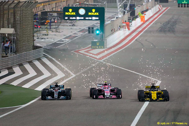 По ходу гонки Льюису Хэмилтону пришлось прорываться через пелотон, и делал он это очень решительно. Когда Льюис догнал группу из трёх пилотов, Эстебана Окона, Нико Хюлкенберга и Фернандо Алонсо, сражающихся между собой, то, недолго думая, пошёл в атаку на всех троих.