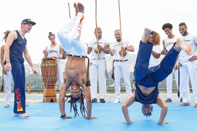 Перед началом уик-энда в Бразилии гонщики Red Bull Racing Даниэль Риккардо и Макс Ферстаппен взяли несколько уроков по капоэйра – бразильскому национальному боевому искусству. И Даниэлю, и Максу понравился полученный опыт, хотя пресс-служба команды тонко подметила, что «несмотря на все усилия Артура Фиу и его команды лучших капоэристов, наши гонщики выглядели также изящно, как слон на роликовых коньках».