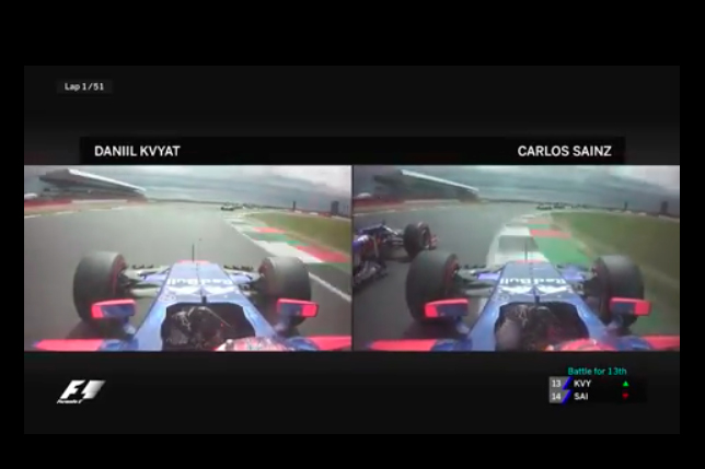 Организаторы чемпионата опубликовали видео столкновения Даниила Квята и Карлоса Сайнса на первом круге Гран При Великобритании, скомпилированное из картинок бортовых камер на машинах обоих Toro Rosso гонщиков.