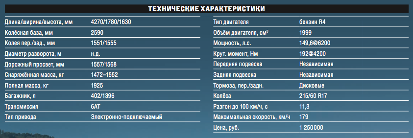 В версии с полным приводом предлагается двухлитровый бензиновый мотор и шестиступенчатый автомат — довольно ленивый тандем, разгоняющийся до сотни за 11,3 секунды. Связано это в том числе и с требованиями безопасности, из-за которых маленькие кроссоверы становятся всё тяжелее. Ещё каких-нибудь 6–7 лет назад такая машина весила бы килограммов на триста меньше, а значит, и разгонялась бы бодрее. Но стандарты заставляют производителя утяжелять «клетку», принимающую на себя удар в случае аварии. В премиальном сегменте это не так заметно, поскольку там активно внедряют алюминий, а в бюджетном, увы, слишком явно.