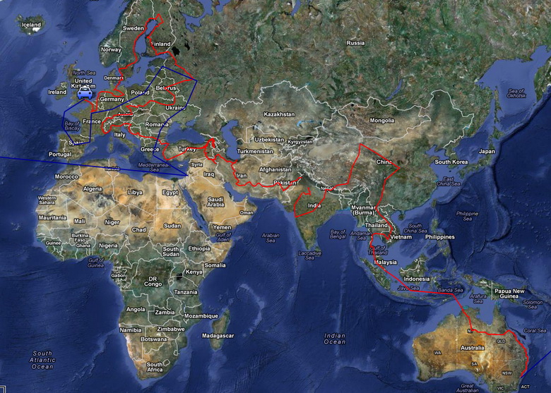 После Финляндии англичане оказались в России. Через Санкт-Петербург и Москву, они двинулись дальше через Беларусь, Польшу, Италию, Грецию и вскоре добрались до Турции. Здесь путешественники сделали крюк, заехав в Грузию и Армению. Дальше начался один из самых проблемных этапов кругосветки, где маршрут проходил по территориям политически неспокойных стран: Ирана, Ирака и Пакистана. Настоящие приключения начались в Иране, когда путешественников задержали агенты службы безопасности, после чего Пол был выслан из страны по подозрению в шпионаже и смог вновь присоединиться к команде только в Пакистане.