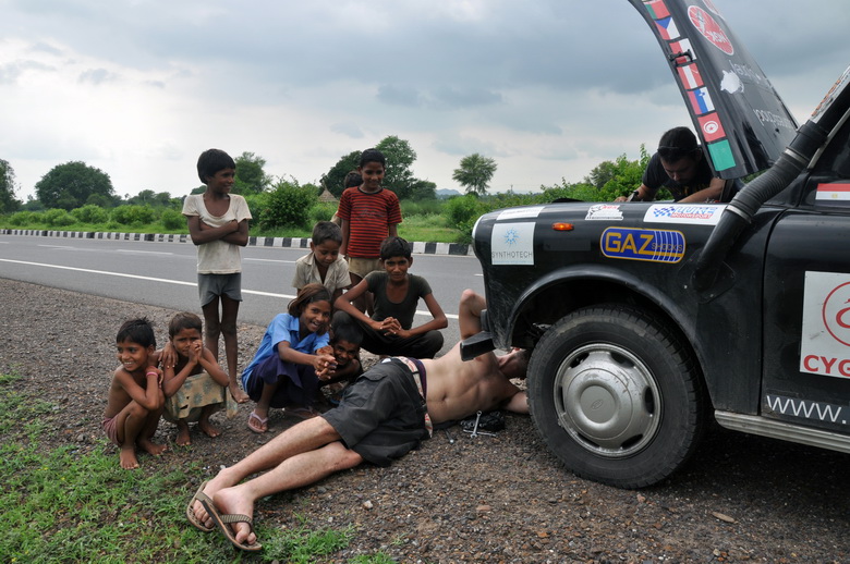 В Индии начались сложности иного порядка, связанные уже с крайне плохими дорогами, самым некачественным топливом и совершенно непредсказуемой манерой вождения местных водителей всех транспортных средств, начиная от простой тачки и велосипеда и заканчивая автомобилями.