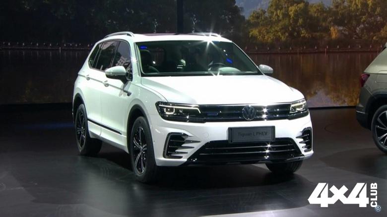 Третьим показанным образцом стал длиннобазный Tiguan L PHEV (авто белого цвета на фото) с гибридной силовой установкой типа plug-in, который начнут продавать в этом году.