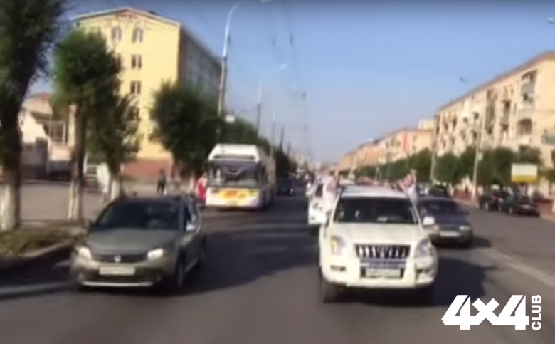 Выпускники академии МВД устроили массовый заезд на внедорожниках Toyota Land Cruiser Prado