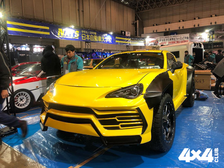 Студенты японского автомобильного колледжа (NATS) представили на автосалоне в Токио свой новый проект — компактный пикап с внешностью Lamborghini Urus, построенный на базе Toyota GT86. Исходному спорткупе практически полностью переработали кузов, оборудовали его подвеской с увеличенным дорожным просветом и 20-дюймовыми колесами с покрышками Nitto размерности 265/50.