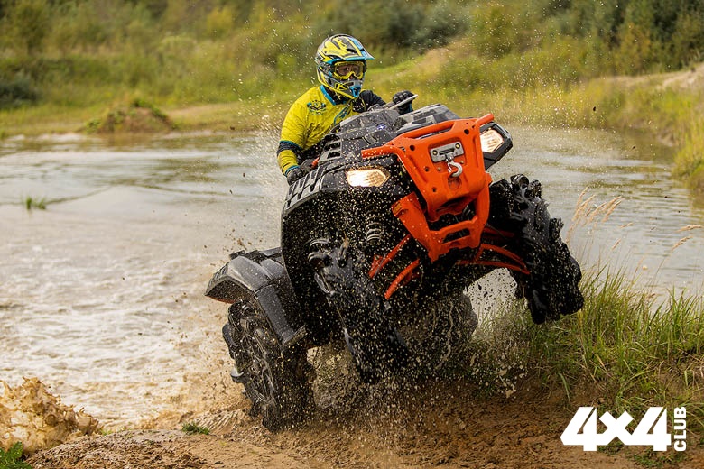 В противовес усыпанному ёмкостями General у Sportsman High Lifter все взятые с собой вещи должны втиснуться в единственный, крайне компактный отсек позади водителя. Необычен пуск мотора — по автомобильному, ключом, вместо привычной мотоциклистам кнопки — и положение «паркинг» селектора трансмиссии — прямо как в коробках-автоматах у больших четырёхколёсных. Самый объёмный и мощный, литровый мотор разгоняет вездеход не так резво, как этого можно было ожидать. Виной тому — огромные колёса и возросшая масса. По причине тех же выросших габаритов и большого дорожного просвета квадроцикл не так плотно проходит вираж и больше кренится. Его стихия — не динамичные прохваты, а ползание по грязи. Малейшая пробуксовка задних колёс на глине тут же отзывается автоматическим подключением передних, и все препятствия перед Sportsman High Lifter становятся несерьёзными. Квадроцикл легко промахивает одно непроходимое место за другим, при этом нижняя часть водителя в большей или меньшей степени погружается под воду. Но стоит проехать топкое место, как передний привод сам по себе отключается, прибавляя машине управляемости и лёгкости разгона.
