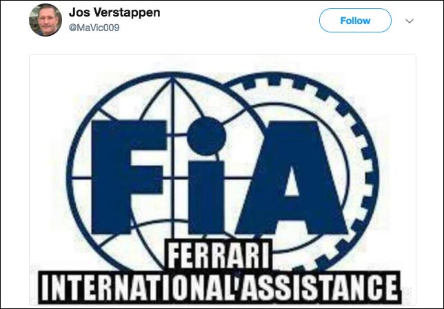 После финиша в Остине Йос Ферстаппен бурно критиковал решение стюардов оштрафовать его сына Макса, в результате чего тот потерял третье место и не поднялся на подиум. На своей странице в Twitter он даже обвинил FIA в ангажированности, расшифровав аббревиатуру как «Всемирная поддержка Ferrari». В интервью Ziggo Sport Йос призвал Чарли Уайтинга уйти в отставку.
