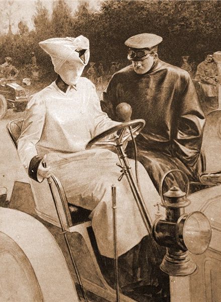 Стоит отметить, что путешествовать женщинам в те времена было весьма непросто: автомобили не то что не имели крыши, а зачастую даже и кабины! Поэтому приходилось одеваться в плотную одежду, закрывать голову и лицо «чехлом», надевать мотоциклетные очки и даже посыпать лицо толстым слоем пудры для защиты от ветра. Некоторые брали с собой компактный револьвер «велодог» на случай дорожных неожиданностей.